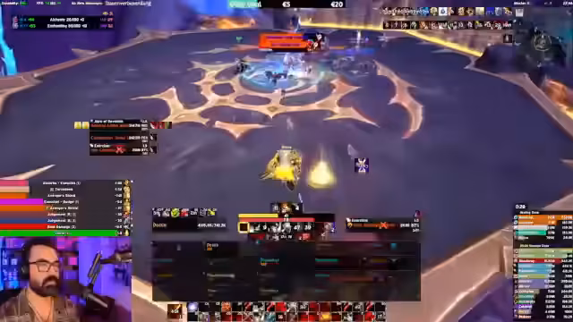 02:33:02Der Stream führt durch mehrere Bosskämpfe mit klaren taktischen Anweisungen. Es werden komplexe Mechaniken wie Dispels, Beam-Ausweichen und Orb-Kontrolle erklärt. Besondere Aufmerksamkeit gilt der Zuweisung von externen Abklingzeiten durch die Heiler und dem Management von Spezialfähigkeiten wie Darkness. Mehrere Wipes und Anpassungen der Taktik zeigen den Lernprozess, wobei Fehler analysiert und korrigiert werden.