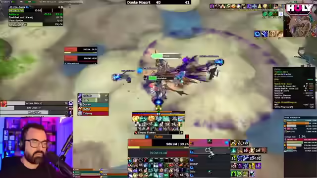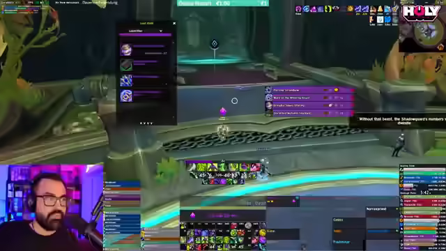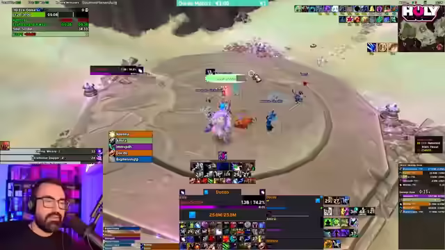 05:45:26Es gab anfängliche Verwirrung, da Zuschauer den Stream doppelt hörten oder durch falsche Voice-Einteilungen abgelenkt wurden, was zu Fehlern im Spiel führte. Die Anweisung war, den Stream stumm zu schalten, um die Situation zu bereinigen. Nachfolgend konzentrierte sich die Gruppe auf die Vorbereitung für den anstehenden Bosskampf, wobei Anweisungen zum Pre-Spannen und zur Positionierung gegeben wurden. Es wurde ein doppelter Heal-Port erwähnt, um das Überleben zu sichern, gefolgt von der Aufforderung, zu einer sicheren grünen Zone zurückzukehren. Die Warbags wurden als einfach zu handhaben eingestuft, und die Spieler wurden angewiesen, sich zu verteilen. Es gab jedoch Unklarheiten bezüglich der korrekten Zonenverteilung, was zu einer kurzen Analyse der WeakAuras führte, um mögliche Fehlerquellen zu identifizieren und zu beheben, um einen reibungslosen Ablauf des Kampfes zu gewährleisten.