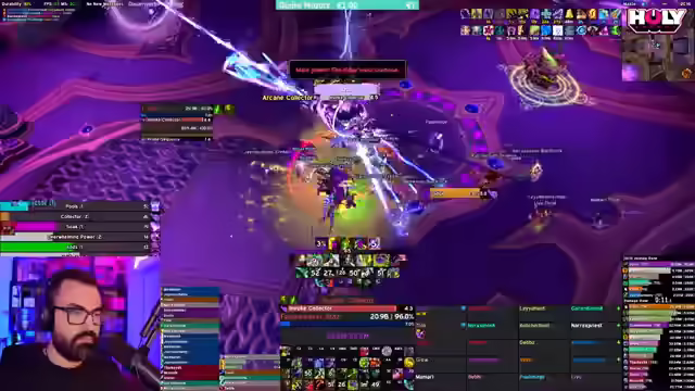 05:18:34Es wird festgestellt, dass der Streamer von der Empower gewonshottet wurde und er in Zukunft weiter weg stehen muss. Der Boss soll kurz vom Echo weggezogen werden, damit dieses nicht gebufft ist. Es wird ein Wipe festgestellt und analysiert, dass es ein massives Ungleichgewicht bei den Kollektoren gab. Pauli soll auf den unteren Kollektor gehen, um das zu fixen. Troc hat den Ablauf verstanden und soll auf die Zahl achten, die unter dem Nameplate hochgeht. Wenn Plater nicht vorhanden ist, soll er auf die Powerbars achten und den Kollektor nehmen, der sich zuerst füllt. Das Add soll beim Spawnen genommen und direkt zum Kollektor gezogen werden. Mamari soll aufs Echo gehen, alles dotten und alle anderen Targets dodgen. Es wird darauf hingewiesen, dass ein Q&A von Blizzard offiziell ist und kein League. Es wird angewiesen, weiter weg vom Boss zu rennen, damit das Echo nicht zu nass wird. Es wird auf die Einschläge und Def-CDs hingewiesen.