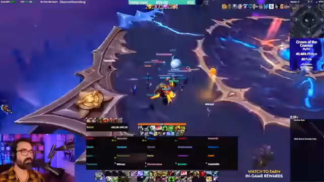 07:55:55Der Stream konzentriert sich auf die Bildung von Gruppen für Mythic+ Dungeons. Der Streamer spricht darüber, dass er mehrere Keys besitzt und nach weiteren Spielern sucht, um diese zu vervollständigen. Es werden spezifische Items wie Velgors Final Stair erwähnt und die Suche nach einem weiteren Tank für einen neuen Key deutlich geäußert. Der Prozess des Gruppenfindens und der Vorbereitung auf die Runs steht im Vordergrund.