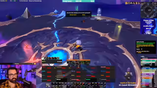 00:41:01Nach der detaillierten Erklärung zum Crest-System schaltet der Streamer zur eigentlichen Aktivität des Streams über. Er plant, einen neuen Mythic+-Dungeon zu starten und sucht aktiv nach weiteren Spielern für die Gruppe. Überlegt wird, ob Skyreach, Magisters' Redemption oder Arcway gespielt wird, während die Gruppe langsam zusammenkommt.