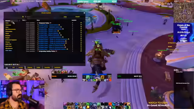 04:09:54Ein technischer Bug wird angesprochen, bei dem sich die Global Cooldowns (GCDs) beim Drücken von Fähigkeiten ziehen und diese nicht ausgelöst werden. Dies wurde hauptsächlich am Anfang der Saison beobachtet und soll, so der Streamer, seit einiger Zeit nicht mehr vorgekommen sein. Der Streamer fragt das Publikum, ob der Bug reproduziert werden kann oder ob es sich um ein temporäres Problem handelte. Er erwähnt zudem Probleme mit dem Aim-Plus-Add-on.