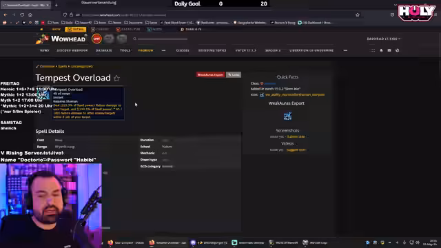 11:20:30Die Diskussion verlagert sich auf die Organisation des bevorstehenden Raids. Der Streamer sucht gezielt nach weiteren Spielern, insbesondere Tanks und einem Schamanen, und stellt Anforderungen wie mehrfachen Mythic-Plus-Erfahrung. Er klärt die benötigte Ausrüstung und stellt fest, dass bestimmte Gegenstände, wie der Arcan-Familia-Talent-Baum, nicht mehr benötigt werden. Die Kommunikation und die genauen Vorgaben für Tanks und Heiler werden festgelegt.