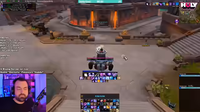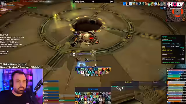 05:21:56Nach der Beendigung des Dungeons muss schnell eine Raid-Gruppe für die Hekili-Rate zusammengestellt werden. Es herrscht Zeitdruck, da der Streamer um 11 Uhr im Wald sein muss. Die Suche nach einem Tank und einem Heiler gestaltet sich schwierig, und es werden mehrmals Umfragen gestartet, um die Rollen zu besetzen. Währenddessen gibt es kurze technische Probleme mit dem Portieren, die schnell gelöst werden. Für den Raid werden Spieler mit Bosserfahrung gefordert, um Fehlern vorzubeugen.