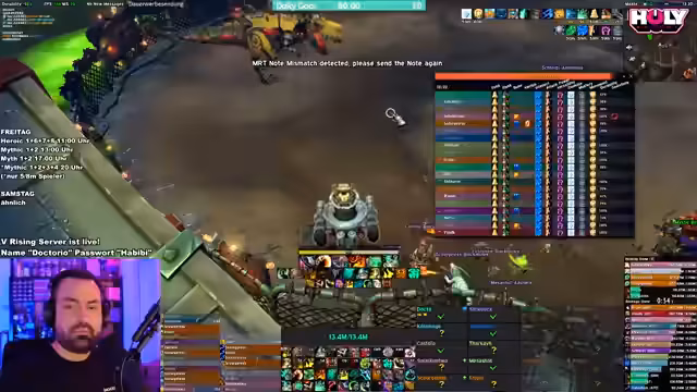 12:53:43Es werden erstaunliche Einzelleistungen in Dungeons beobachtet, wie ein Arcane Magier mit über 30 Millionen DPS im Kampf und ein anderer Spieler, der einen Boss in unter zwei Minuten besiegt. Der Streamer deckt das MDI-Turnier und die neuen Regeln, darunter die Bannung von Specs, und die Tatsache, dass alle Teams auf einem Turnierserver mit perfektem Gear ausgestattet sind, intensiv.