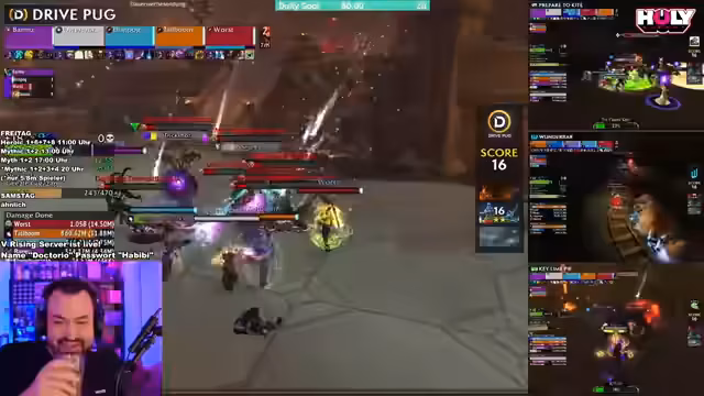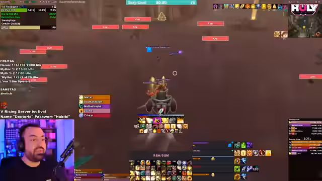 09:33:34Der Stream beginnt mit einer Diskussion über einen vermeintlichen Holy Shock-Crit, der einen Spieler plötzlich getötet haben könnte, was auf einen Heiltrank hindeutet. Der Streamer stellt die Voraussetzungen für die Teilnahme an seinen Mythic Dungeon Runs vor. Im Durchschnitt haben Teilnehmer vier bis fünf abgeschlossene Mythische Schlachtfelder und einen Item-Level von 665. Die Mindestanforderung liegt bei einem Item-Level von 655 und dem Wissen über seine Guides, insbesondere die Boss-Guides.