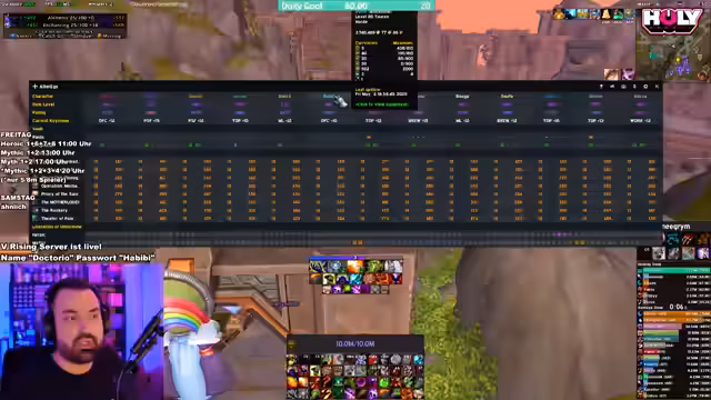 10:02:08Nach anfänglichen technischen Problemen mit der Benutzeroberfläche beginnt der Streamer, das Makro systematisch auf verschiedene Klassen zu testen. Zuerst probiert er es mit einem Feuermagier, einem Schurken und einem Paladinen. Er stellt fest, dass die Grundfunktionen大多 korrekt arbeiten, aber wichtige,Cooldowns und komplexere Mechaniken wie Vanish oder das Halten von Buffs wie Shake the Heavens bei Paladin nicht automatisch durchgeführt werden.