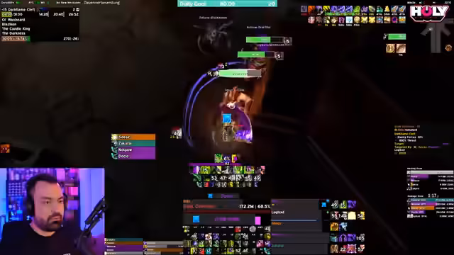06:48:53Der Stream konzentriert sich auf eine detaillierte Auseinandersetzung mit dem Gameplay in einem Mythic Dungeon. Der Kommentator gibt kontinuierlich taktische Anweisungen für die Positionierung der Gruppe, das Auseinandersetzen mit Bossmechaniken und die Verteilung der Schadensverteilung (Damage). Er betont die Notwendigkeit, sich von Bossen fernzuhalten, bestimmte Fähigkeiten wie Windwasch zu nutzen und die Gruppierung bei bestimmten Ereignissen zu beachten. Fokus liegt auf der sauberen Ausführung von Mechaniken wie dem Ziehen des Bosses in Raummitte und dem Verteilen der Ranges, um Flächen effektiv aufzusaugen und Schaden zu vermeiden.