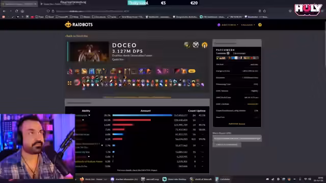00:41:59Nach dem Sieg über Maxi optimiert der Streamer weiter seinen Charakter. Er simmt Werte durch, um die optimale Ausrüstungskombination zu finden. Für den Boss Sticks spricht er über die Schwierigkeiten, gute Logs zu erzielen, da man sehr koordiniert mit den Spielern sein muss, die die Balls fahren. Es geht um das Maximieren des Schadens durch richtige Timing und Positionierung der Fähigkeiten.