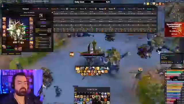 03:15:11Während eines besonders intensiven Dungeon-Runs wird der Streamer mit 42 Stacks eines gefährlichen Debuffs konfrontiert, was zu 4 Millionen HPS führt. Trotz der schwierigen Situation gelingt es der Gruppe, den Boss zu besiegen. Der Streamer lobt die Koordination des Teams und erwähnt, dass jeder Spieler mehr als 5 IQ hat, was den Run erleichtert hat.
