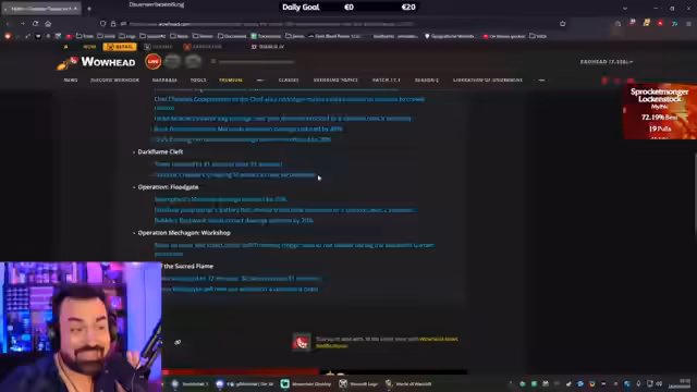 00:21:02Der Streamer geht auf die neuesten Patchnotizen ein und erwähnt mehrere Nerfs und Buffs. Ein Blood Death Knight Set Bonus wurde gefixt, da er vorher den Eisbaum-Fortitude-Bonus überschrieb. Ein Vengeance Set Bonus wurde ebenfalls gefixt und verbessert. Marksmanship Jäger haben einen Nerf erhalten, da sie von den Spotters Mark_procs anderer Jäger profitieren konnten. Brand in den Delves wurde gebufft, da die Hitbox in der Z-Achse vergrößert wurde. Auch die Cast-Zeit von Throw Rock wurde erhöht und der Schaden um 25% reduziert.