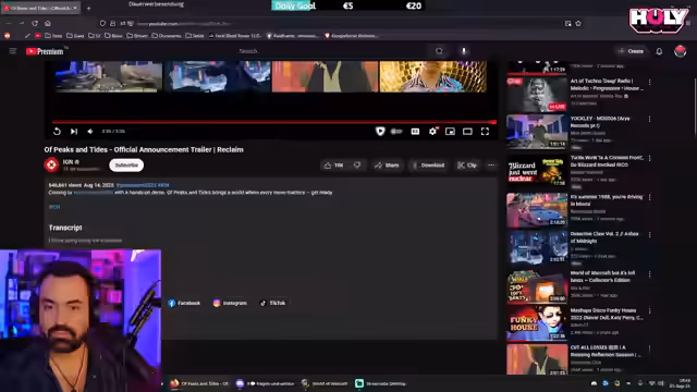 04:08:45Nach einer kurzen Pause zum Mana-Management wird das neue Spiel 'Peaks and Tides' vorgestellt. Der Streamer ist von den gezeigten Grafiken, Biomen und dem Gameplay beeindruckt und vergleicht es mit Spielen wie Sons of the Forest. Er äußert jedoch Bedenken bezüglich des linearen Gameplays im Vergleich zu prozedural generierten Welten wie in Valheim. Trotz der anfänglichen Skepsis wird das Spiel aufgrund seiner vielfältigen Features wie Base-Building, logistische Transportwege und Naturkatastrophen auf die Wunschliste gesetzt.
