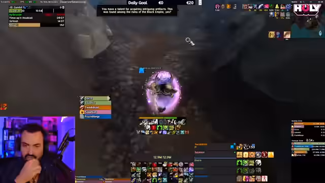02:33:00Der Stream fängt sich und es werden Pläne für den nächsten Dungeon geplant. Der Streamer überlegt, ob er als Warrior tanken soll, da er kürzlich entdeckt hat, wie stark der Execute-Spell ist. Es werden kurze Pläne für verschiedene Specs wie Paladin, Monk und DK angedeutet, wobei die Frage nach dem Kopf des Hunters gestellt wird, der möglicherweise einen 'Ragnaros Timelight Raid' lohnen könnte. Es bleibt unklar, ob der Streamer einen Dungeon startet oder erst zum vorgesehenen Gilden-Raid.