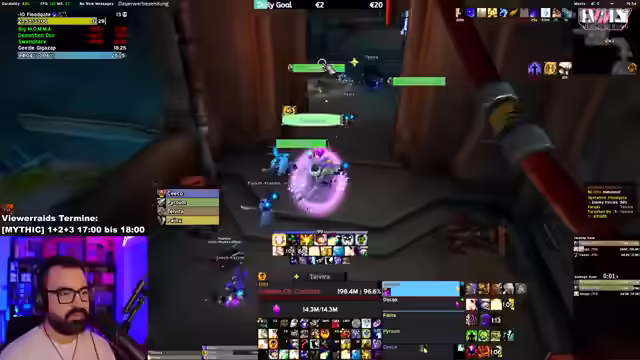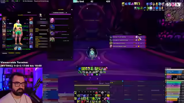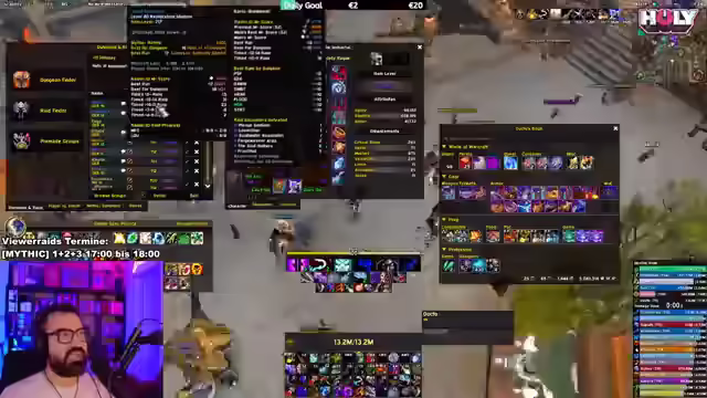 01:26:27Es wird angekündigt, dass der Raid eine Stunde später stattfindet, was bedeutet, dass der Streamer erst um 20:45 Uhr verfügbar ist. Er überlegt, einen Ring zu craften und simuliert verschiedene Optionen, um das beste Ergebnis zu erzielen. Es wird diskutiert, ab welcher Keystone-Stufe Routenpflicht besteht, wobei betont wird, dass ein Tank wissen sollte, welche Packs er pullen will. Der Streamer plant, Mozart in Augsburg zu besuchen und möglicherweise eine Community-LAN-Party zu veranstalten. Nach einigen technischen Problemen mit den Sims wird entschieden, einen weiteren Dungeon zu spielen. Es wird ein Invite für drei Mythic Keys angekündigt, und der Streamer wählt Spieler aus, wobei er auf Trinket-Trades achtet. Er kritisiert einen Zuschauer für seine verpeilten Fragen zum Simmen und verweist auf seinen M-Plus-SIM-Guide.