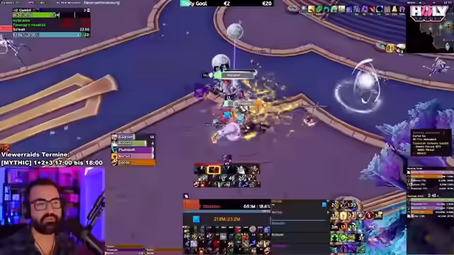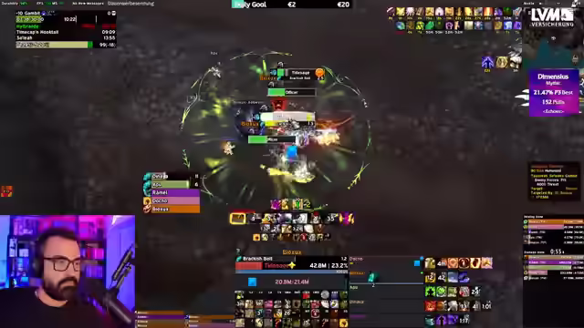 09:17:23Mehrere Zuschauer werden im Stream begrüßt, darunter Dener und Sir Bobo, wobei letzterer gebeten wird, sich und seinen Stream kurz vorzustellen. Es wird über die Spielweise von Rikimaro diskutiert, insbesondere seine Wahl des MM-Jägers, und ihm wird empfohlen, auf BM-Jäger umzusteigen. Es wird eine Geschichte über ein früheres Treffen in Rust erzählt, bei dem ein Zuschauer den Streamer auf WoW aufmerksam gemacht hat. Der Streamer erinnert sich an eine Situation, in der er von der Frau eines Zuschauers 'den Arsch jucken' ließ, während dieser Giftsabs verteilte. Es wird über die DPS des Jägers im aktuellen Key diskutiert und festgestellt, dass er nicht optimal spielt. Dem Zuschauer Alucard wird angeboten, in einem zukünftigen Key mitzuspielen, um Feedback zu geben. Es werden feste Zeiten für gemeinsame Keys vorgeschlagen, entweder mittwochs oder täglich spät in der Nacht.