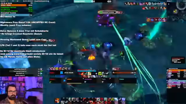 09:26:48Im Fokus des Streams stehen detaillierte Erklärungen zu Bossmechaniken in Mythic Plus Dungeons. Es werden spezifische Fähigkeiten wie Laserstrahlen, die den Boss beschleunigen, und Frontalangriffe analysiert. Der Streamer betont die Notwendigkeit für Tanks, diese Strahlen zu vermeiden und zu seiteln, während Heiler die daraus resultierendenTicks auf den Spielern heilen müssen. Auch wird die strategische Bedeutung von Pulldynamiken, dem Avoiden von Feuerflächen und dem Verstecken hinter Objekten bei bestimmten Bossen erläutert.