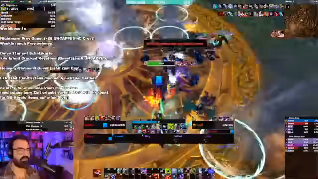 06:34:39Der Streamer analysiert einen Mythic+-Dungeon und konzentriert sich auf den Boss 'Solar Elementar'. Wichtige Mechaniken sind das sofortige Entfernen von 'Blinding Light', das Management der 'Orb', welche AOE verursacht, und das Aktivieren von 'Konstrukten', die einen Pipistrahl casten. Der Tank muss dafür sorgen, dass die Strahlen den Boss nicht erreichen, indem er dieAdds einsammelt. Der Streamer betont, dass man die Spawnorte der Adds vorhersagen muss und kritisiert die unklare Darstellung dieser Mechanik.