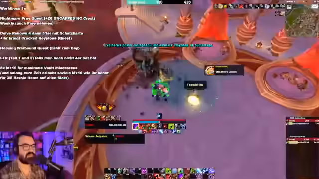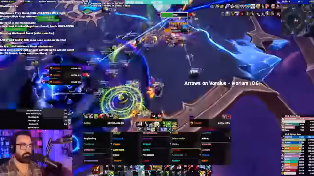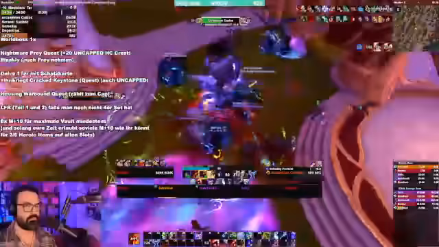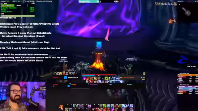 15:04:42Der Fokus liegt auf den Raid-Erfahrungen der ersten Bosse in Midnight, insbesondere bei dem Boss 'Void'. Der Streamer beschreibt die komplexen Mechaniken der Debuffs, die eine klare Zuweisung und Kommunikation im Raid erfordern. Er schlägt eine Strategie vor, bei der der Raidlead die ersten beiden Dispäls zuweist, während die restlichen Spieler sich selbst organisieren müssen. Diese Mechanik wird als positiv bewertet, da sie mehr interaktives Verlangen als WeakAuras erfordert.