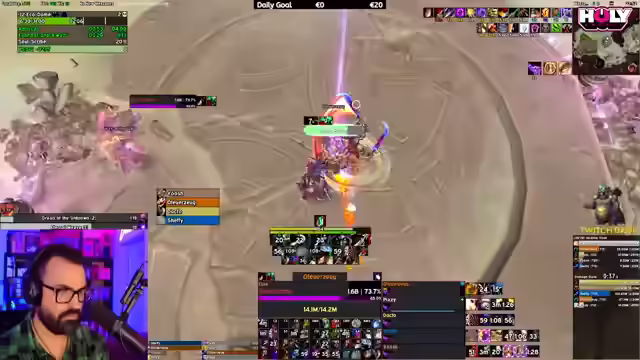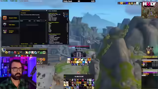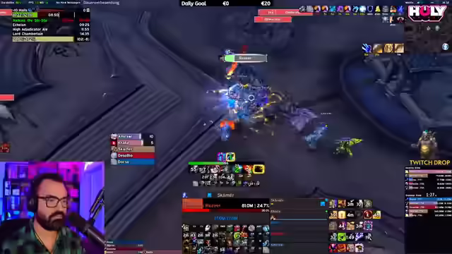 08:12:03Es wird über den Zuwachs an Followern diskutiert und vermutet, dass dieser mit kürzlich veröffentlichten YouTube-Videos zusammenhängt. Ein Zuschauer fragt nach Mythic-Boosts, was jedoch verneint wird. Eine Frage zu Shadow Word: Death wird beantwortet, wobei erklärt wird, dass sich die APL geändert hat und der Zauber hauptsächlich für die Mobilität genutzt wird. Es wird die Frage diskutiert, welche Dungeons gespielt werden sollen. Es wird ein Monk Tank für einen Key gesucht und danach soll auf der Alpha nachgesehen werden, ob die Server wieder online sind. Es wird überlegt, ob der Server wieder online ist. Es wird über die Notwendigkeit von Addons diskutiert und erklärt, dass diese durch die Vereinfachung des Spiels nicht mehr nötig sind.