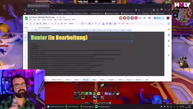 09:12:29Der Streamer gibt einen Überblick über die angepinnten Patch Notes, die öffentlich zugänglich sind. Er konzentriert sich auf die Änderungen beim Hunter, wobei die Hunter-Spezialisierungen seit The War Within (TWW) immer wieder angepasst wurden. Dragonflight brachte bereits große Änderungen für Survival, BM wurde vereinfacht und MM wurde überarbeitet, was jedoch wenig Einfluss auf das Gameplay hatte. Der Fokus lag weiterhin auf Aim-Shot, Rapid-Fire und Arcane-Shot. Dark Ranger hat das Gameplay etwas verändert, während Sentinel hauptsächlich Rapid-Fire beeinflusste. Der Streamer zeigt sich gespannt auf die anstehenden Änderungen, insbesondere beim Survival-Hunter, wo viele Talente entfernt wurden. Er plant, die Änderungen für Beastmaster, Marksmanship und Survival zu untersuchen und die Zuschauer abstimmen zu lassen, welche Spezialisierung zuerst behandelt werden soll. Es wird ein kurzer Einblick in den Chakram-Shot gegeben, dessen Animation noch nicht implementiert ist. Der Guardian-Droide wird als unausgereift kritisiert und es werden baldige Überarbeitungen erwartet. Es wird mit Dark Ranger begonnen und Kill Shot wurde entfernt, Deathblows abgeschwächt und Sentinel massiv überarbeitet.