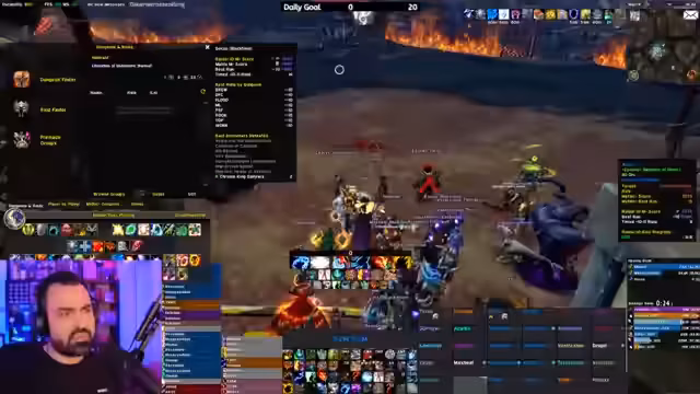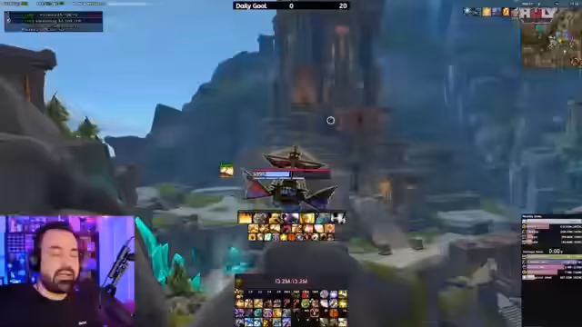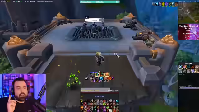 05:04:46Beim Eintritt in das Raid-Instanzgebiet treten technische Schwierigkeiten auf. Ein Spieler berichtet, dass der Pfad zum Bossblock versperrt ist. Der Streamer gibt eine detaillierte Anleitung, wie man eine bestimmte Goblin-Quest erledigen muss, um einen Durchgang zu öffnen. Es entstehen Verwirrungen über die Teamzusammensetzung und Rollen, was zu kurzen organisatorischen Unterbrechungen führt, bevor der endgültige Start des Bosskampfs anvisiert wird.