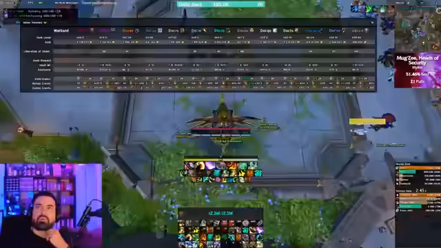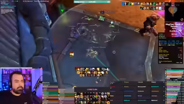 00:30:32Nach dem erfolgreichen Kill des Bosses Sticks folgt eine lockere Nachbereitung und Interaktion mit der Community. Der Streamer analysiert den Schaden einzelner Spieler, insbesondere Slapo, und diskutiert mögliche Fehler und Verbesserungen. Im Chat wird über aktuelle Themen wie das neue Add-on 'Details Mythic Plus' gesprochen, welches zukünftig das Standard-Panel ersetzen soll. Der Streamer nutzt diese Gelegenheit, wiederholt auf seine Homepage mit den Guides hinzuweisen und mahnt die Zuschauer an, sich vor dem Fragenstellen dort zu informieren.