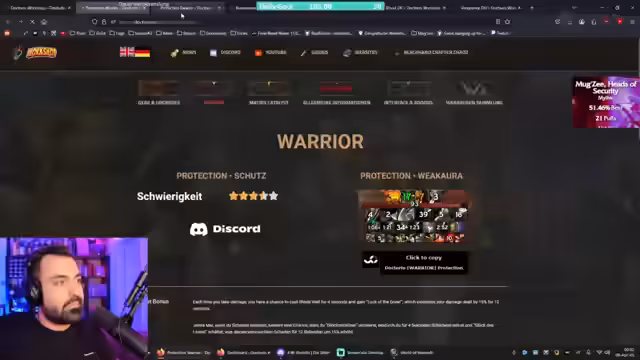 10:45:48Der Streamer gibt einen detaillierten Überblick über die aktuellen Schwierigkeitsstufen der Tankklassen für diese Saison, die er auf seiner Homepage zur Verfügung stellt. Er erklärt, dass z.B. Pod Warrior einfacher geworden ist, weil die RPM-Anforderungen gesunken sind, während Blood Death Knight und Brew Monk weiterhin als sehr schwer gelten. Er erwähnt, dass seine WeakAures auf der Homepage wichtige Tools für das Spielverständnis sind.