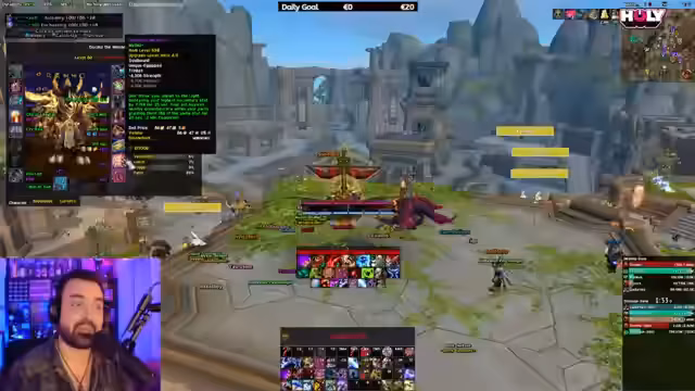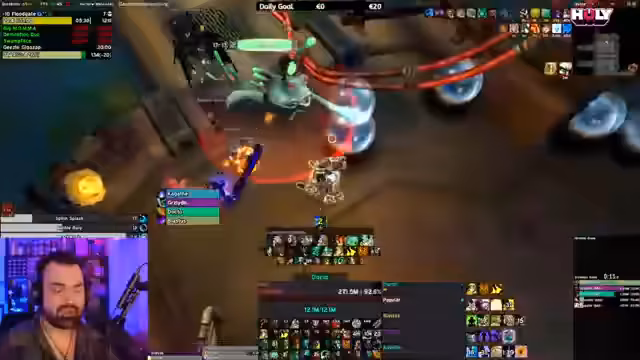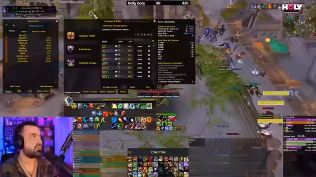 09:56:04Die Gruppe bereitet sich darauf vor, einen spezifischen Dungeon, wahrscheinlich Priory, zu spielen. Es gibt eine Diskussion über Loot-Verteilung, insbesondere um ein Tank-Trinket. Der Streamer organisiert eine Gruppe für einen 10er-Dungeon und fordert einen fähigen Tank. Es werden einige Spieler namentlich angesprochen und eingeladen. Der Prozess der Gruppenfindung und der Vorbereitung für den Dungeon ist im Gange.