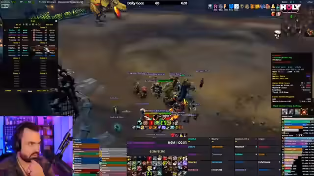 06:19:14Der Stream beginnt mit der offiziellen Ankündigung des zweiten Chips-Raid. Es wird erklärt, dass es sich hierbei um den aktuellen Raid handelt. Es gibt kurze Unterhaltungen über Spielmechaniken, wie z. B. das Sammeln von Rats. Im Vordergrund steht eine koordinierte Vorbereitung, bei der die Teilnehmer Request und Zulauf für den Raid organisieren. Dabei werden auch spezifische Spieler wie Schwanz, der Frontmann der Visions-Leute, als Ansprechpartner genannt. Es wird eine Diskussion über den Status von Mythic BOE-Items und die fehlende Bestätigung einer Nerf geführt.