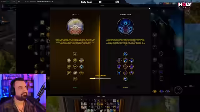 02:19:29Der Streamer geht auf den häufigen Vergleich zwischen den zwei beliebten Heiler-Talenten 'Void Viva' und 'Oracle' ein. Er erklärt, dass 'Void Viva' in den meisten Fällen, insbesondere in Schlüsseln von Stufe 10 bis 14, dem 'Oracle'-Talent überlegen ist. Der Hauptvorteil von 'Void Viva' liegt im deutlich höheren Rohschaden, der durch die beschriebene Bomben-Mechanik erzielt wird. 'Oracle' hingegen wird erst in sehr hohen Schlüsseln (ab 15er) relevant, da es externe Abklingzeiten für die Gruppenmitglieder bereitstellt und so das Überleben von Fähigkeiten ermöglicht, die ansonsten einen One-Shot verursachen würden.