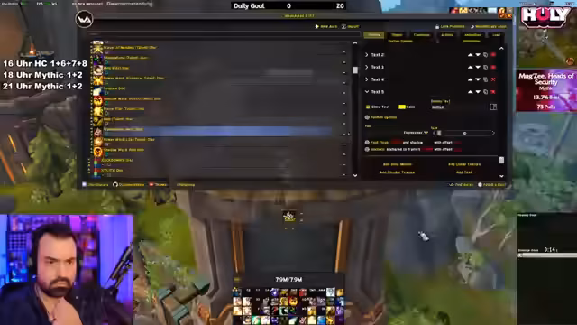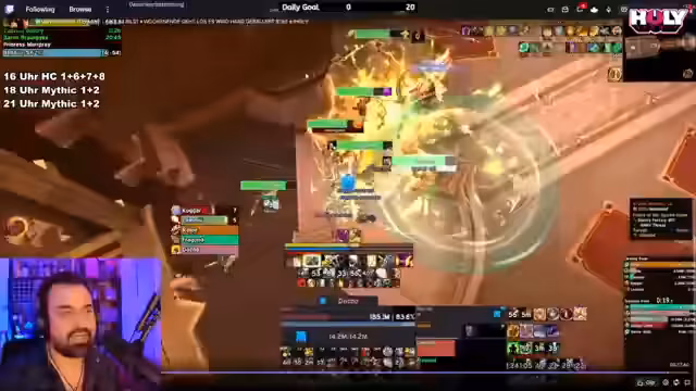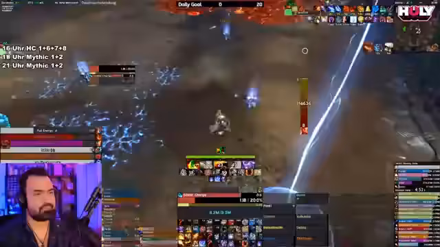 13:45:44Der Start des Dungeons gestaltet sich chaotisch, da ein Spieler Pulls gegen die vom Streamer erarbeitete Route ausführt, was zu gefährlichen Situationen und Komplikationen führt. Der Streamer betont die Wichtigkeit, sich an die geplante Route zu halten, um einen Wipe zu vermeiden. Trotz der Probleme werden die ersten Mobs erfolgreich bewältigt, und es wird mit dem Bossfight begonnen, bei dem der Streamer hohen Schaden erzielt, aber sich über die Performance des Tanks beschwert.