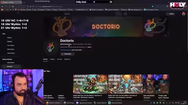 06:32:07Der Streamer kündigt an, einen Mythic-Progress-Raid zu organisieren und nennt die Voraussetzungen für die Teilnehmer. Anwärter müssen die Raid-Bosse durch die vorigen YouTube-Guides kennen können. Da bereits vier Heiler feststehen, sucht er gezielt nach einem weiteren Tank und weiteren Spielern, um eine vollständige Gruppe für die Veranstaltung zu bilden.