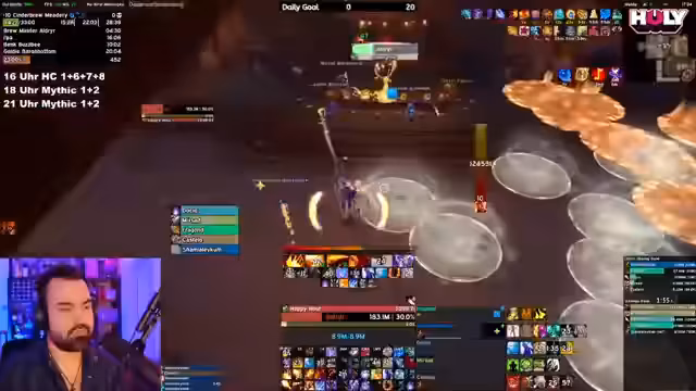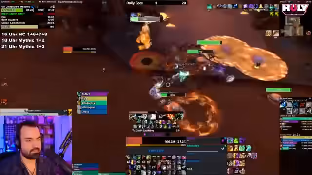 13:15:55Nach einem anstrengenden Raid wird die Leistung der Gruppe anhand von Logs analysiert. Der Streamer ist enttäuscht von den niedrigen Schadenswerten der Spieler. Er wechselt das Thema, um einen anderen Streamer, Mr. Doctor, vorzustellen und spricht über verpasste Kooperationsmöglichkeiten. Anschließend beginnt er, einem Warlock die Grundlagen seiner Rotation zu erklären und kritisiert fehlerhafte Fähigkeitsnutzung, insbesondere wie man den Backdraft-Buff am effizientesten einsetzen kann.
