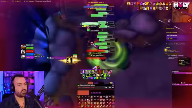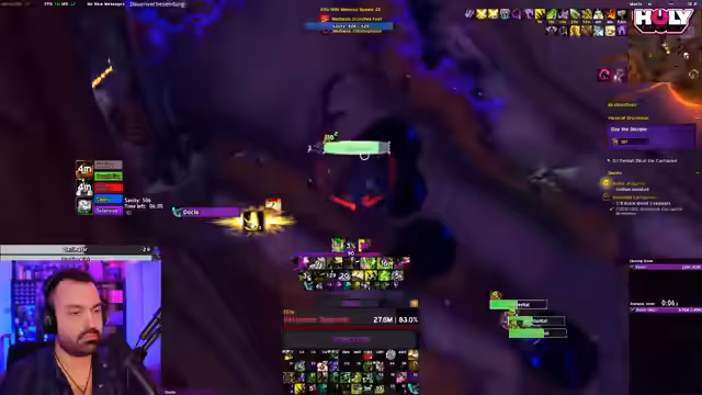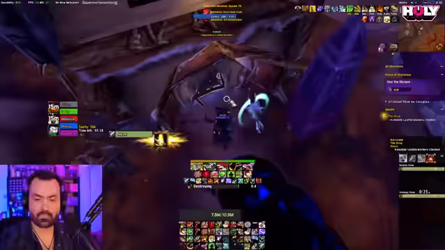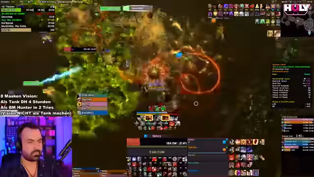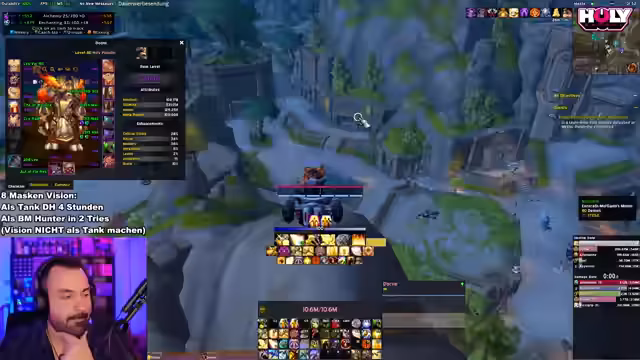 05:25:18Der Streamer vergleicht die Performance verschiedener Klassen in den Visionen und stellt fest, dass die Anpassungen für Heiler und Tanks die Schwierigkeit drastisch erhöht haben. Besonders als Tank sind die Mobs extrem stark skaliert. Als DPS-Klasse wie dem Beast Mastery Hunter ist der Inhalt jedoch deutlich leichter zu bewältigen. Er erwartet einen Hotfix von Blizzard, um die Balance wiederherzustellen, und gibt Tipps zur optimalen Spielweise, um die toxischen Mechaniken der Mobs zu überleben.