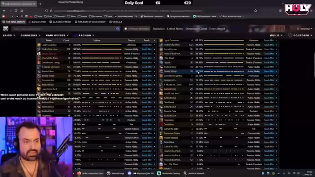 01:56:49Der Stream konzentriert sich hauptsächlich auf das Spielen von Mythic Dungeons und die Vorbereitung für einen anstehenden Raid. Der Streamer zeigt seine Frustration über die hohen Anforderungen an Tanks in aktuellen Dungeons und geht auf die Komplexität ein, die für das Tanking erforderlich ist. Er erzählt auch von seinen eigenen Erfahrungen mit Streaming und wie er sich verbessert hat. Abschließend betont er die Bedeutung von Teamwork und Kommunikation für den Erfolg im Spiel und gibt Tipps für besseres Gameplay.