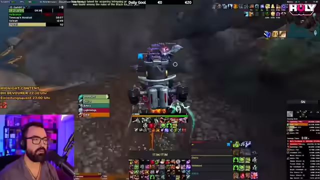 06:41:48Es wird erwartet, dass Midnight und die Vorbesteller am Releasedatum um 23:57 Uhr vor Ort sein werden, um die Quest zu erhalten. Die erste Quest wird sein, zu Lady Liadrin zu gehen, die einen direkt aus dem Brunnen portet. Die Cinematic dazu wird gezeigt, in der Leandris und Lord Remar von Xanathas angegriffen werden und Leandris den Brunnen um Hilfe bittet, woraufhin die Spieler als Ritter des Lichts erscheinen. Es wird spekuliert, dass die erste Quest darin bestehen wird, sechs leere Gestalten zu töten, acht verwundete Wachen zu helfen und die Gürtelschnalle von Xanathas zu bringen. Es wird diskutiert, was man spielen soll, wobei der Warlock aufgrund von Gildenproblemen die Wahl bleibt. Es wird empfohlen, das Interface nicht zu früh umzustellen, sondern bis zum Pre-Patch zu warten, der ungefähr einen Monat vor Midnight erscheint. Der Pre-Patch wird alle Addons kaputt machen und Zeit geben, sich an die Klassenänderungen und neuen Talente zu gewöhnen. L4I wird wahrscheinlich das wichtigste Addon sein, um das hässliche WoW zu verschönern. Turbo-Bus kommt nächste Woche und erhöht alle Upgrades von 6 von 6 auf 6 von 8. Dinare und Crest uncapped kommen später. Es wird erklärt, welche Talente für die verschiedenen Bosse geskillt werden. Abschließend wird noch auf Fragen zum BM-Begleiter eingegangen und erklärt, dass es komplett egal ist, was für ein Pet man zähmt.