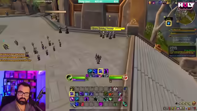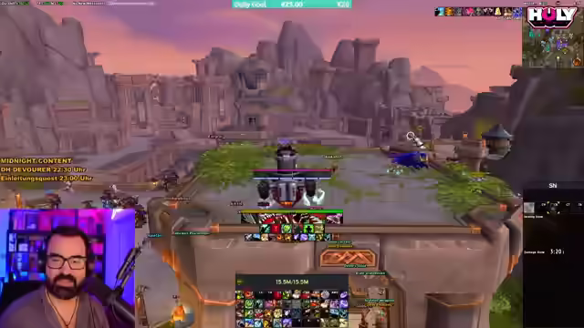 07:24:35Es wird klargestellt, dass das No-Week-Hour-Addon für Midnight bereits vor zwei Stunden gecovert wurde, bevor es als Artikel auf Wowhead erschien. Es wird betont, dass Klassen-WeakAuras auch weiterhin geschrieben werden und international Anklang finden. Im Gegensatz zu anderen Addon-Erstellern, die möglicherweise von den Änderungen betroffen sind, sieht der Streamer die Beschneidung von Addons positiv, da weniger Arbeit anfällt und keine Einnahmen verloren gehen. Eine Umfrage ergab, dass 90% der Zuschauer die Änderungen begrüßen. Die Bedeutung von Zeit (Day Raiding) als Hauptfaktor für das Race to World First wird hervorgehoben, wodurch sich das Race trotz der Änderungen nicht wesentlich verändern wird. RC Loot Council und Routensharing von MDT bleiben als Kommunikationsmittel außerhalb des Kampfes bestehen. Es wird vermutet, dass L4UI auch weiterhin als Reskin Add-on bestehen bleibt und mit Midnight sogar das wichtigste Add-on werden könnte. Der Streamer gibt an, 51 Millionen Gold zu besitzen, was durch sparsames Ausgeben, viel Spielen und Boost Runs generiert wurde.
