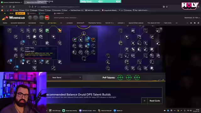 08:57:31Die ersten Zeilen bei den Druiden-Talenten beinhalten immer neue Talente, gefolgt von harten Reworks und dann unwichtigeren Inhalten. 'Gift of the Wild', das Mark of the Wild um 100% effektiver auf den Anwender macht, wird als uninteressant abgetan. 'Heart of the Wild' wurde redesigned und ermöglicht eine starke Off-Roll-Fähigkeit basierend auf der aktuellen Gestaltwandlungsform. Es wird gehofft, dass 'Heart of the Wild' komplett entfernt wird, aber es hat jetzt einen 3-Minuten-Cooldown. In Bärform profitiert man davon und erhält einen zusätzlichen Defensiv-CD sowie 'Last Stand' für 20 Sekunden. 'Earth Sign Vigor' bleibt bestehen und bietet weiterhin Health und Armor, was besonders gegen AOE Physical Damage nützlich ist. Mit dem Rework von 'Heart of the Wild' wird die Bärform potenziell sehr stark.