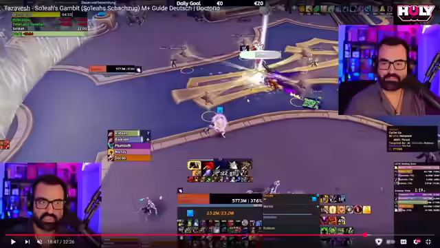 07:38:04Der Kanal bietet Educational WoW Content, der sich auf Guides, Tutorials und Q&A konzentriert, um Spielern zu helfen, sich in Retail-WoW zu verbessern. Es wird auf die Homepage mit Guides und Tutorials verwiesen, die Basics wie WeakAuren und Mouse-Over-Macros abdecken. Aktuell liegt der Fokus auf Midnight, um die Zuschauer auf die kommende Erweiterung vorzubereiten. Es wird empfohlen, das Aufrufezeichen Midnight einzugeben, um zu einem Street zu gelangen, der eine zusammengefasste Änderungsversion für die Klassen enthält. Der richtige Zeitpunkt, um das Interface vorzubereiten, ist mit dem Pre-Patch, der voraussichtlich kurz nach Weihnachten erscheint. Viele Leute sind aufgeregt, weil Addons beschnitten und Klassen-WeakAuras verschwinden. Der Streamer hat seine WeakAuras und YouTube-Videos noch nie monetarisiert und ist daher von den Änderungen nicht betroffen. Es wird diskutiert, ob die Weak-Auren eine große Auswirkung auf das Race to World First haben werden. Es wird erklärt, dass die Weak-Aura einem sagt, wann man soken soll. Es wird auch eine Einteilung mit zwei Gruppen jeweils gemacht. Es wird auch die Frage beantwortet, was der Unterschied zu der Node mit zwei Gruppen und der Gruppe mit vier Leuten ist.