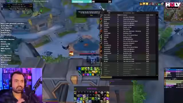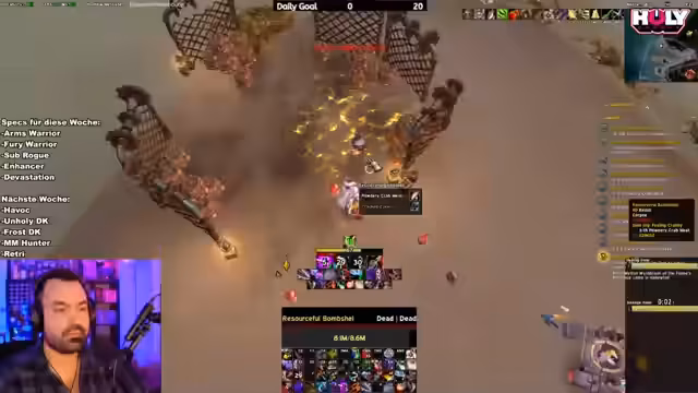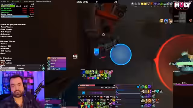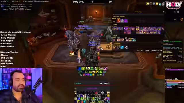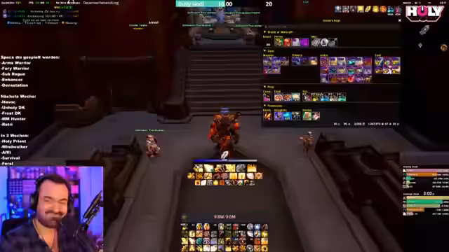 00:15:36Die Diskussion verlagert sich auf die geplanten Klassen für die nahe Zukunft. Der Streamer listet auf, welche Specializations er in den kommenden Wochen streamen wird, darunter Arms Warrior, Fury Warrior, Sub Rogue, Enhancement Shaman, Frost Mage, Feral Druid und Retribution Paladin. Er äußert seine Frustration über prockabhängige Klassen, die er als negativ empfindet, da sie von reinem Glück abhängen und ihn vor Glücksspiel schützen. Er betrachtet dies als ein extremes Beispiel für die einfache Grauzone zwischen einem Grumpelmann und dem Verlust des Hauses.