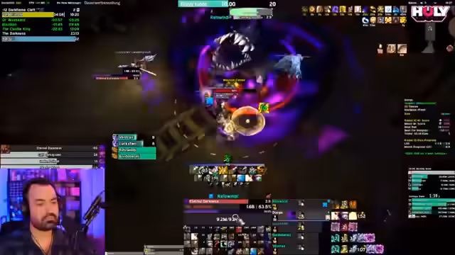 00:43:36Nachdem er sich mit Konzepten beschäftigt hat, initiiert der Streamer eine Gruppe für den Dungeon 'City of Threads', um die wöchentliche 1000-Ruf-Quest zu erledigen. Er braucht noch einen Heiler und zwei DDs für einen schnellen Normaldurchlauf. Parallel dazu diskutiert er im Chat über die Zukunft von Addons in World of Warcraft. Er äußert die These, dass Blizzard nicht komplett verbieten wird, sondern nur die extrem spezialisierten Funktionen einschränken wird, während sie die beliebtesten Addons wie Damage-Meter selbst integrieren.
