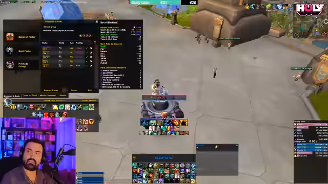 06:23:24Der Streamer sucht für einen Zeitvertreib bis 23 Uhr nach Gilden, die heute Mythic-Raids machen und noch jemanden benötigen. Er ist bereit sowohl als Raider für HC als auch M+ auszuhelfen und Übung mit seinen Charakteren zu sammeln. Er erwähnt, dass es ein DCO-Event um 23 Uhr gibt, bei dem er teilnehmen möchte. Außerdem werden einige Zuschauer eingeladen, um an einem Key teilzunehmen, nachdem die vorherige Gruppe abgebrochen ist.
