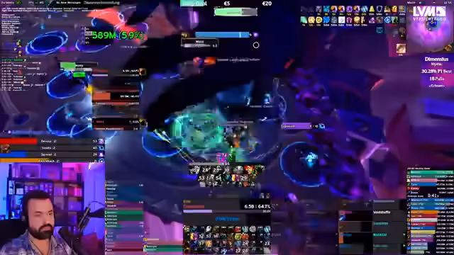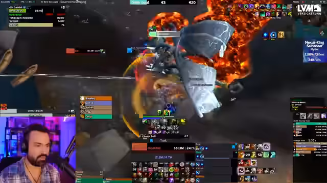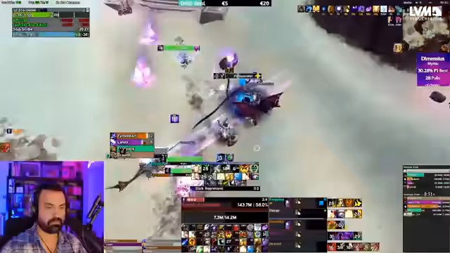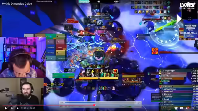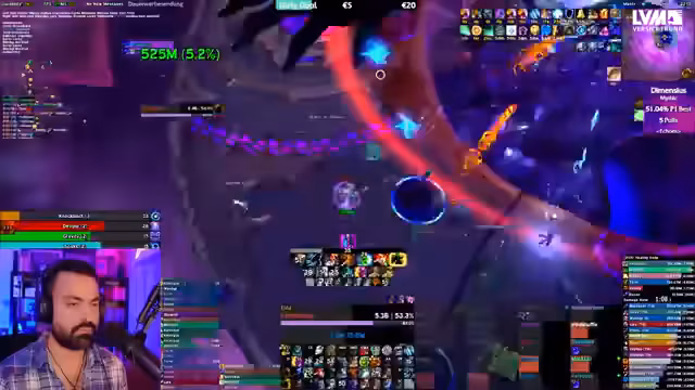 07:57:27Es kommt zu weiteren Problemen bei der Ausführung der Taktik, insbesondere mit den Positionen und dem Handling der Adds. Ein Spieler stirbt, weil er sich nicht schnell genug bewegt hat. Parallel dazu stellt der Streamer fest, dass ein Spieler viel höheren Schaden macht, weil er ein anderes Trinket (Virtual Forge) verwendet. Dies führt dazu, dass der Streamer seine Damage im Vergleich zu dem Top-Spieler analysiert und strategische Anpassungen in Erwägung zieht. Die Stimmung ist trotz der Schwierigkeiten motiviert und fokussiert auf das Ziel, den Boss zu töten.