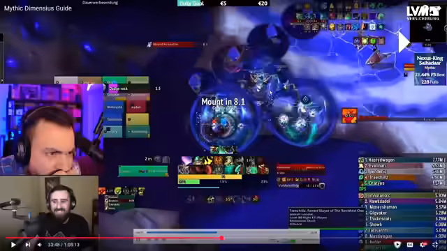 04:53:59Der Streamer analysiert Strategien für Dimensius Phase 2 (P2) und verweist auf Trade Noss Guide, der zwar ausführlich, aber nicht immer effizient in der Informationsvermittlung ist. Er lobt ein Feature, das es schon lange gibt, aber seiner Meinung nach von vielen Spielern nicht ausreichend genutzt wird. Er plant die morgigen Raids mit Warlock, Mage, Rogue und Monk als Tank und bespricht die Aufteilung der Aufgaben mit Big und Nala. Er freut sich über das geplante Tempo und die Effizienz der Raids. Er plant, während des Essens Draytons Analyse zu P2 anzusehen und anschließend P2 nochmals durchzugehen, wobei er sich besonders auf den Knockback-Effekt konzentrieren will. Er analysiert die Positionierung der Spieler und Adds in P2 anhand eines Videos und bespricht verschiedene Strategien, um die Adds unter den Boss zu bekommen. Er geht auf die Bedeutung von Stun-Rotationen und Weak Auras ein, um die Übersicht zu behalten und das versehentliche Töten des falschen Void Wardens zu vermeiden. Er erklärt die Mechanik von 'Crushing and Inverse Gravities' und betont, dass immer ein Melee, ein Range und ein Heiler betroffen sind.
