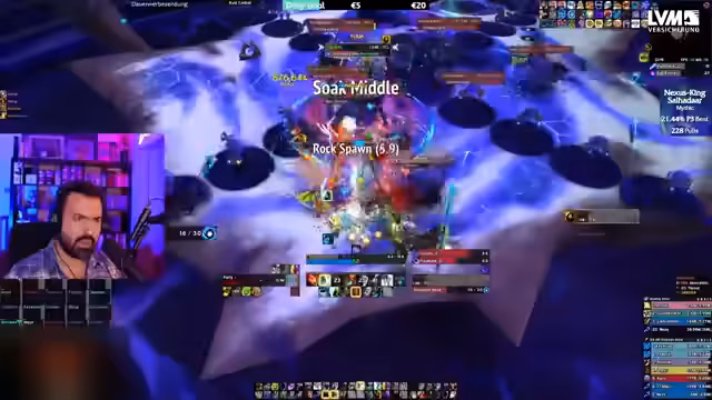 07:15:20Es wird auf die schwierige Überlappung von Soak, Gravity und dem Runterziehen der Leute in Phase 1 hingewiesen. Spieler dürfen nicht zu früh dran sein, da dies zum Runterziehen von Leuten führen kann. Es wird ein Gateway in die Mitte benötigt, wofür nur drei Sekunden Zeit bleiben. Die Raid-Zusammenstellung mit doppelten Warlocks für Gateways wird als notwendig erachtet, um sicherzustellen, dass alle herunterkommen und die Gateways schnell erreicht werden können. Ein weiterer Knockback folgt, für den keine Spiralformation verwendet wird. Stattdessen sollen die Spieler die Gäste ausfüllen, wobei die Melee-Spieler wieder in der Front stehen. Es wird erneut betont, dass die Soaks Vorrang haben und die Orbs erst nach den Gravities aufgenommen werden dürfen. Nach diesem Ablauf ist Phase 1 im Wesentlichen abgeschlossen. Für die meisten Gilden folgt nach diesem Punkt ein Knock, bei dem die Spieler sich einfach verteilen sollen. Die Gruppe plant, die Dämpfe an einem bestimmten Punkt zu stoppen und eine Pause einzulegen, sofern keine Fragen bestehen. Es wird festgestellt, dass die Adds viel zu schnell sterben, was Anpassungen in der Strategie erfordert. Der Streamer muss seinen Opener anpassen, um dem schnelleren Ableben der Adds Rechnung zu tragen.