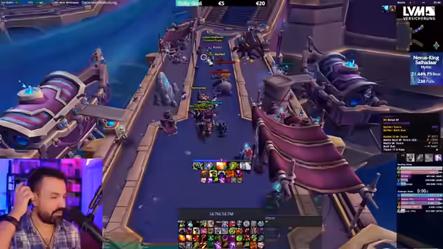 01:05:32Unmittelbar bevor der Nexus King Raid beginnt, wird die Gruppenkomposition besprochen. Trotz geringerer Item-Level und eines unkonventionellen Setups mit vier Demon Hunters zeigt der Streamer Optimismus und betont, dass auf niedrigeren Schwierigkeitsgraden die Ausrüstung und die Comp weniger entscheidend sind. Der Fokus liegt auf einem effizienten und erfolgreichen Raiderlebnis, bei dem die spielerische Leistung vor allem im zweiten Miniboss im Vordergrund stehen wird.