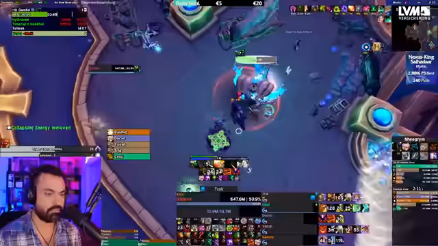 04:54:22Der Streamer beschäftigt sich mit der Taktik für den zweiten Phase des Bosses Nexus King Dimensius. P2 ist für ihn als Ele-Schamane weniger kritisch, da die Hauptaufgabe das Positionieren der Adds ist. Die Taktik beinhaltet, Adds auf einer Seite zu cleaven, sie mit Stuns zu kontrollieren und mit 'Death Grip' an die richtige Position zu bringen, um die Fähigkeiten des Bosses zu bewältigen. Die genaue Positionierung und Koordination sind hierbei essentiell.