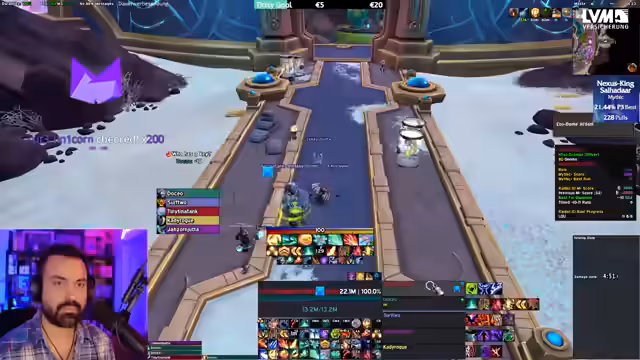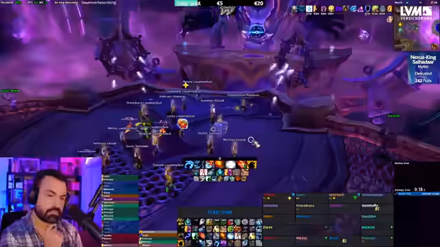 03:46:30Es wird eine Frage beantwortet, wie sich Gilden auf neue Bosse vorbereiten. Die Antwort ist, dass sie sowohl auf den PTR legen, was möglich ist, als auch Learning bei Doing betreiben. Nexus King ist zu hart, um ihn zu legen, aber da wird dann einfach so viel gepullt, wie man nur kann und so viel Information extrahiert, wie man nur kann. Es wird alles gelockt, jeder Tooltip wird analysiert, aufgeschrieben und dann geschaut, wie ungefähr das sich abspielen könnte. Es wird erwähnt, dass Data Miner Informationen extrahieren und analysieren, um Taktiken zu entwickeln. Bei Hardcore-Einteilungen werden Pausen gemacht, um Taktiken auszuarbeiten oder die Leute werden schlafen geschickt oder kurz N-Plus-Farmen. Im Notfall werden einfach alle Taktiken für alle Eventualitäten vorbereitet. Es wird betont, dass hinter erfolgreichen Gilden ein riesiges Unternehmen mit Analysten, Teamspielern, Ersatzbänken, Teamärzten, Auswertern, Goldeinsammlern, Community-PR-Managern, Moderatoren und Sponsoren steckt.