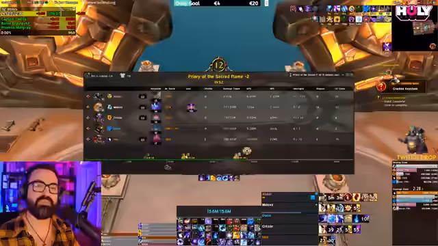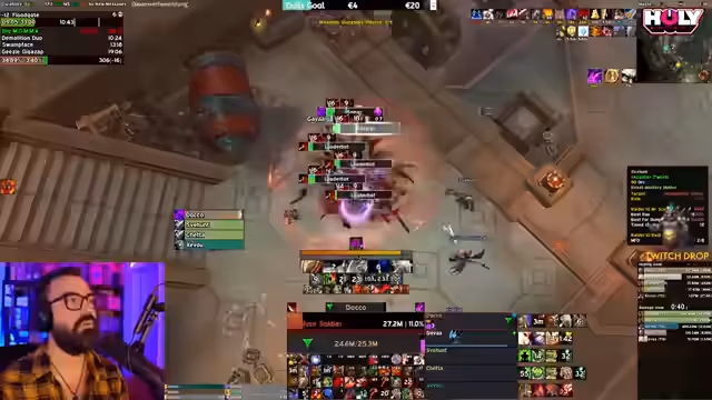 02:27:16Nach der Diskussion über Tank-Strategien beginnt der Streamer mit der Zusammenstellung der Raid-Gruppe. Er erwähnt, dass die Wahl des Dungeons Gambit oder Priory sein könnte, wobei Gambit aufgrund des setups mit 'Quintiple Melee' bevorzugt wird. Das Ziel ist, 12er Schlüssel zu farmen, um sich auf den Mittwoch vorzubereiten. Dabei wird deutlich, dass es dem Streamer weniger um die Schwierigkeit der Dungeons geht, sondern vielmehr um die Effizienz und maximale Uptime der Schlüsselbelohnungen (Crests) für den Farm-Zweck.