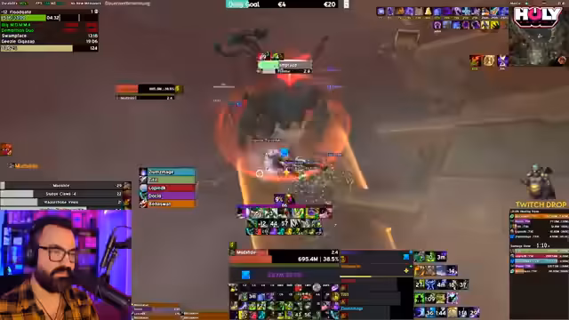 10:30:53Der Streamer und seine Gruppe begeben sich in ihren ersten Heroic Dungeon. Die Gruppe muss Prozente erzielen, indem sie Mobs besiegt, um dann den Boss zu kämpfen. Es werden spezifische Mechaniken wie eine Soakfläche und ein freizuhaltener Kegel-Bereich erwähnt, der an bekannte WoW-Bosse erinnert. Die Kommunikation und Koordination sind entscheidend. Die Ulti des Heilers steht zur Verfügung, aber dessen AOE-Heal hat eine lange Abklingzeit, was zu kritischen Momenten führen kann. Das Treffen von Mounts ist das primäre Ziel des Runs.